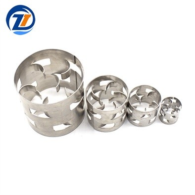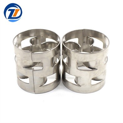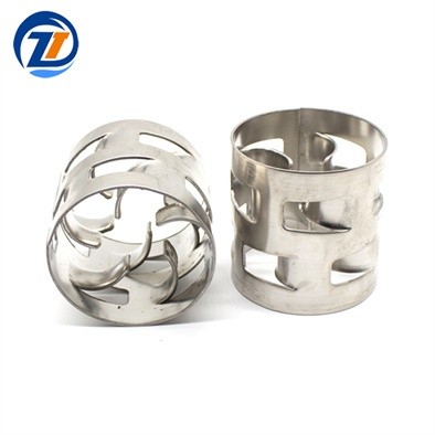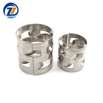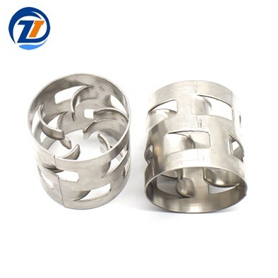 金屬鮑爾環(huán)填料是20世紀(jì)40年代德國BASF公司在拉西環(huán)填料的基礎(chǔ)上開發(fā)的,它采用金屬薄板沖扎制成,在環(huán)壁上開出了兩排帶有內(nèi)伸舌葉的窗孔,每排窗有五個(gè)舌葉彎入環(huán)內(nèi),指向環(huán)心,在中心處幾乎相搭,上下兩層窗孔的位置相互錯(cuò)開,一般開孔的總面積約為整個(gè)環(huán)面積的35%左右。由于在環(huán)壁上開了許多窗孔,使得填料層內(nèi)的氣、液分布情況及傳質(zhì)性能比拉西環(huán)有較大的改善。